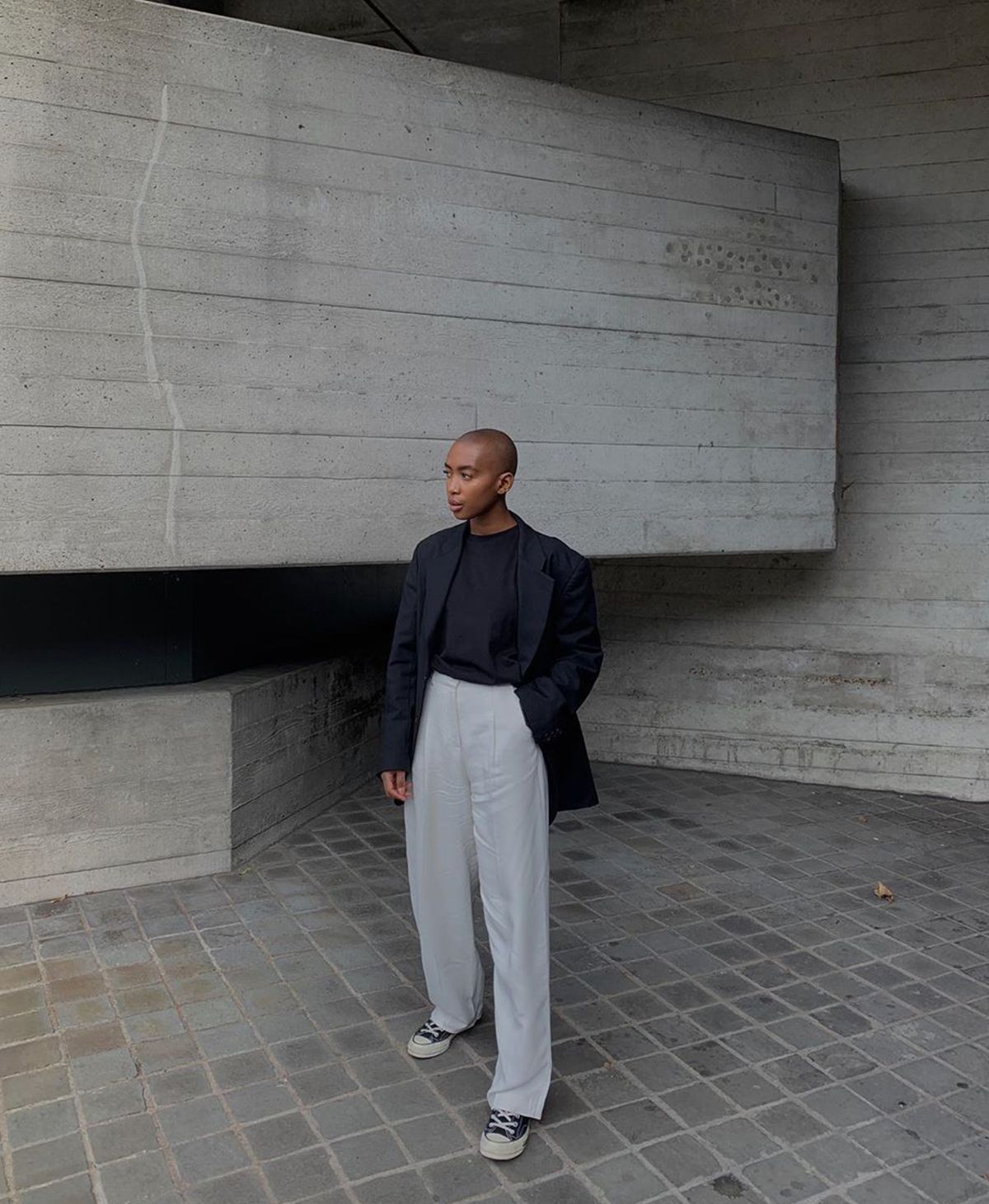 Style Notes: This outfit strikes the perfect balance between relaxed and smart thanks to the oversized silhouettes and Converse.